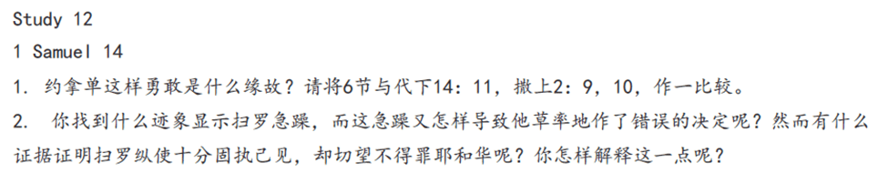 - 扫罗轻率地中止求问神(19节),却草率地叫百姓起誓(24节),不准他们吃东西