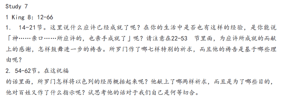 反思:所罗门为民的祷告充满了智慧洞见,如果时光一直停留在这里多好,结局看起来很美好,神也欢喜,人也喜乐。这种一时的平衡并不能维持多久,而真正的结局却比这更美好!