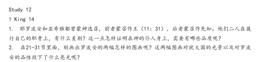 问题1、耶罗波安和亚希雅都曾蒙神选召,前者蒙召作王(11:31),后者蒙召作先知。他们二人在履行自己的职责上,有什么差别?这一点怎样证明在神的仆人身上,需要有哪些品质呢?