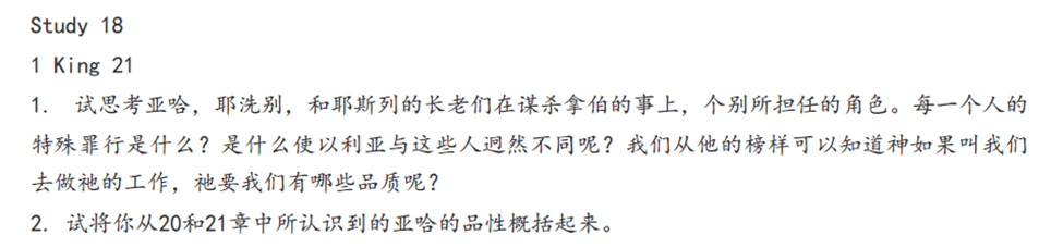 问题2、试将你从20和21章中所认识到的亚哈的品性概括起来。