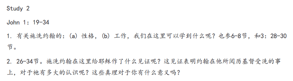 问题1、有关施洗约翰的(a)性格,(b)工作,我们在这里可以学到什么呢?